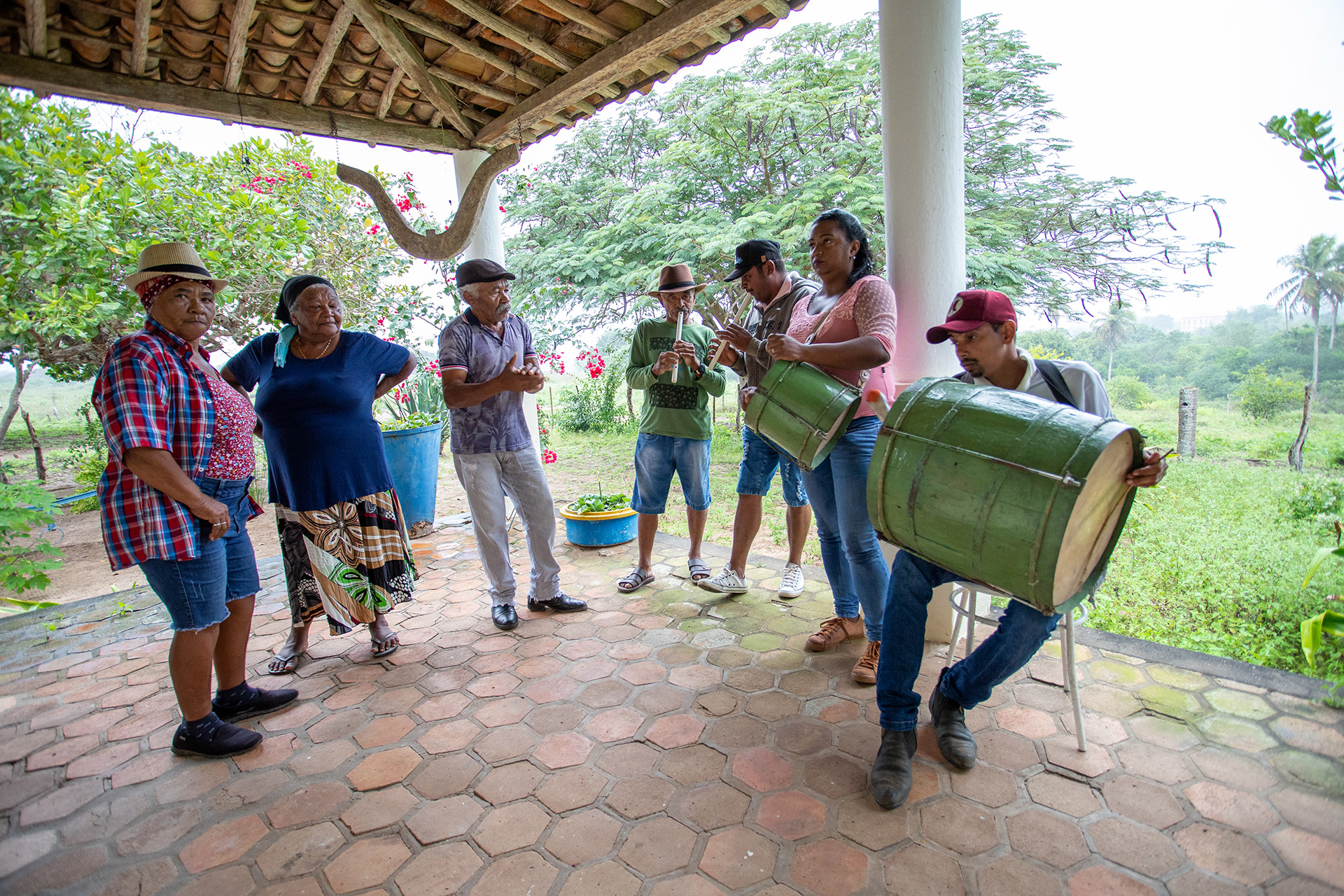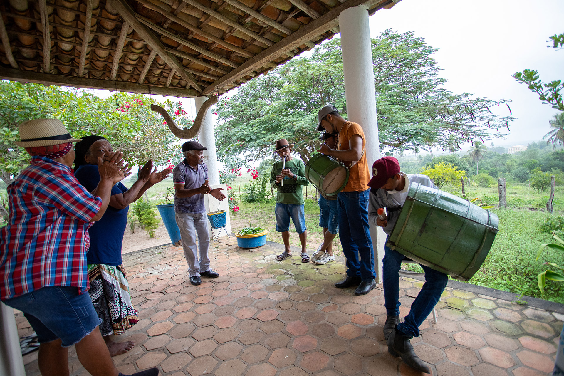 Designação: Zabumbeiros e filhos de santo dançando na Casa Grande.