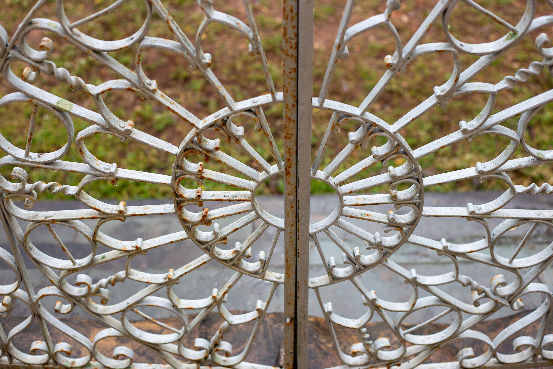 Material / Técnica: Feito de ferro, com arco abatido e volutas.
